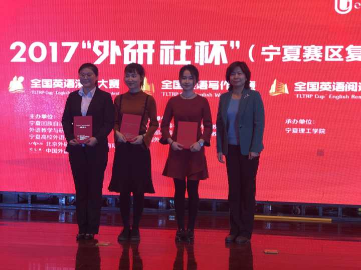2015级政治系张钰同学荣膺“外研社杯”全国英语演讲大赛宁夏赛区特等奖和“外研社杯”全国英语写作大赛宁夏赛区二等奖,2016级政治系包道广同学荣获“外研社杯”全国英语演讲大赛宁夏赛区一等奖。
