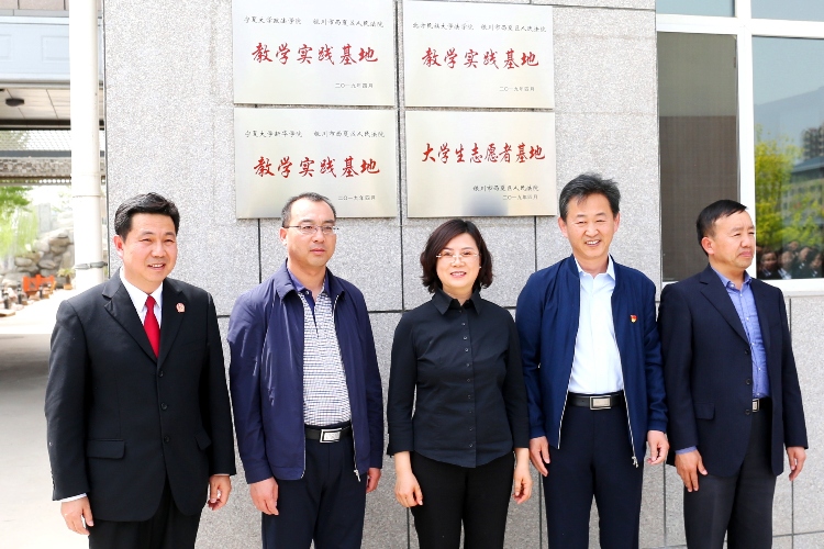 新华学院共建大学生实习基地与志愿者服务基地签约暨揭牌仪式在西夏区法院隆重举行。