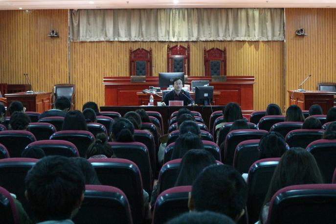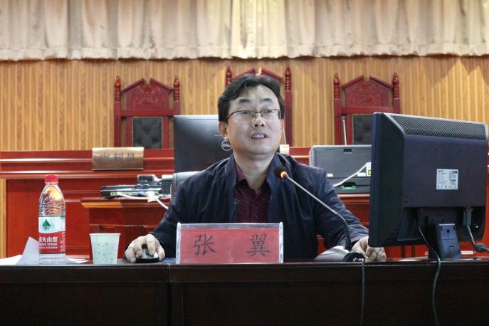 网络文明守纪与安全教育宣讲团团员、学生处副处长张翼老师在贺兰山校区文荟楼模拟法庭,为政17k小说