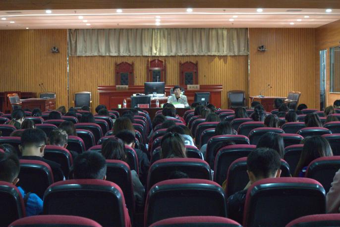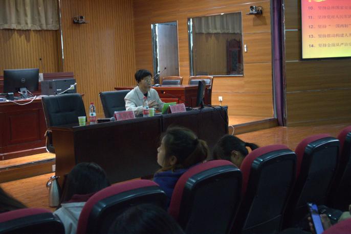 关工委五老报告团成员陆美石老师,于贺兰山校区文荟楼模拟法庭,为同学们深刻解读了习近平新时代中国特色社会主义思想。讲座由政17k小说