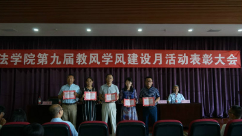 于2018年4月至6月举办了“第九届教风学风建设月系列活动”。6月27日下午两点,学院在文荟楼模拟法庭隆重召开表彰大会,对在教风学风建设月中表现突出的先进集体和个人进行集中表彰。
