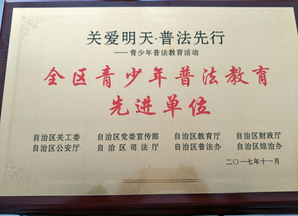 院长任军在全国第三届“关爱明天、普法先行”青少年普法教育活动中被评为先进个人,党委副书记崔明堂在全区青少年普法教育活动中被评为先进个人,辅导员张宗敏荣获全国第三届“关爱明天、普法先行”青少年普法教育活动优秀辅导员。