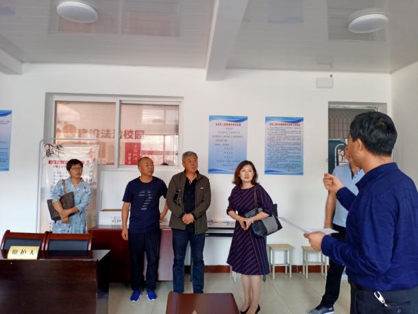 在石嘴山市教育局李科长的陪同下,师生们到活动开展的五个会场进行实地考察。第一站为主会场石嘴山市九中,马旭校长亲自参加了启动仪式的筹备沟通会,大家就人员、场地、物品配置、模拟法庭、多功能厅相关设备等一一梳理查看,确保活动有条不紊地开展。