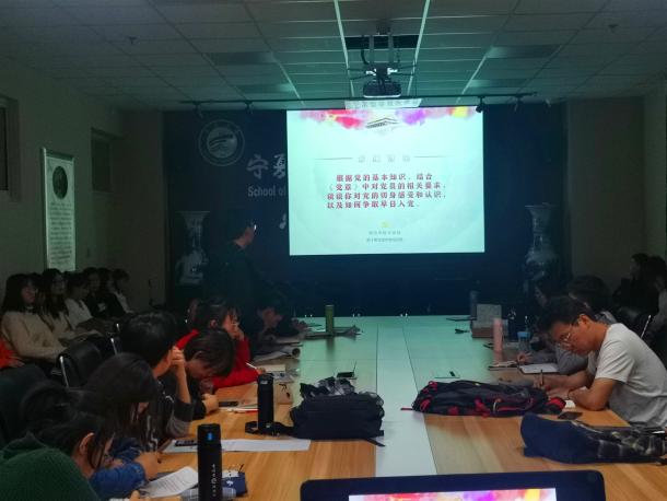 10月29日晚,学院组织第十期发展对象培训班全体学员于文荟楼801会议室观看主题教育影片《可爱的中国》;组织第三十六期入党积极分子在模拟法庭观看主题教育影片《周恩来的四个昼夜》。