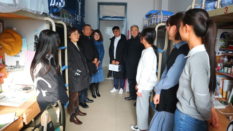 1月2日上午,政17k小说 组织慰问部分在校学生,向他们致以节日的祝福和美好的祝愿。院领导潘瑞、吕耀军、胡世恩、尹强和辅导员参加慰问。
