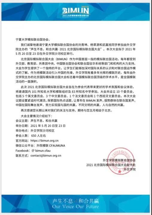 国际关系学会代表队,于2021年5月20日至23日赴京参加由外交学院主办,外交部、教育部、共青团中央、中国联合国协会指导的2021北京国际模拟联合国大会。