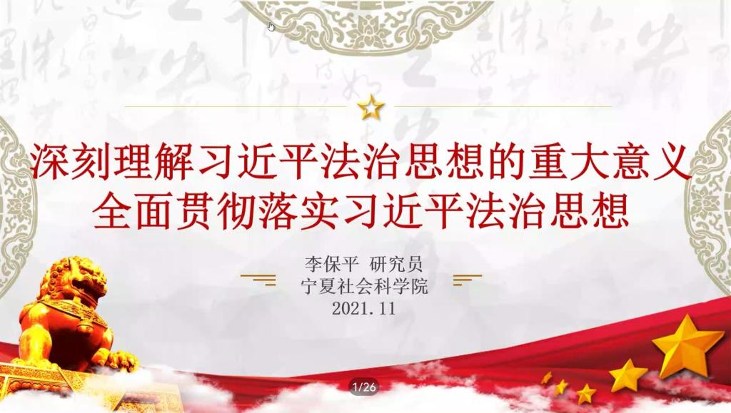 于11月3日下午组织开展《习近平法治思想概论》课程第二讲“习近平法治思想的重大意义”线上学习。本次讲座由宁夏社科院法学与社会学研究所所长李保平研究员主讲,17k小说