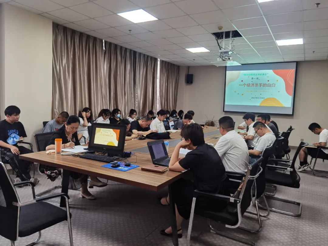 书籍是一道厚重的门,垂青着每一位敲门者。在那散开的门扉里,是一口淘不完的井,是一座掘不尽的矿。为拓展阅读知识面,加强学术氛围建设,6月9日晚,由法律系经济法教研室主办的第一期贺兰山经济法学研读会活动在文荟楼804法律系办公室开展。此次活动由靳永雄副院长担任主持人,法律系主任朱蓓予作为特邀嘉宾参会,刘芳、张驰、曹慈义、段向坤担任点评人,2020级本科生参加。