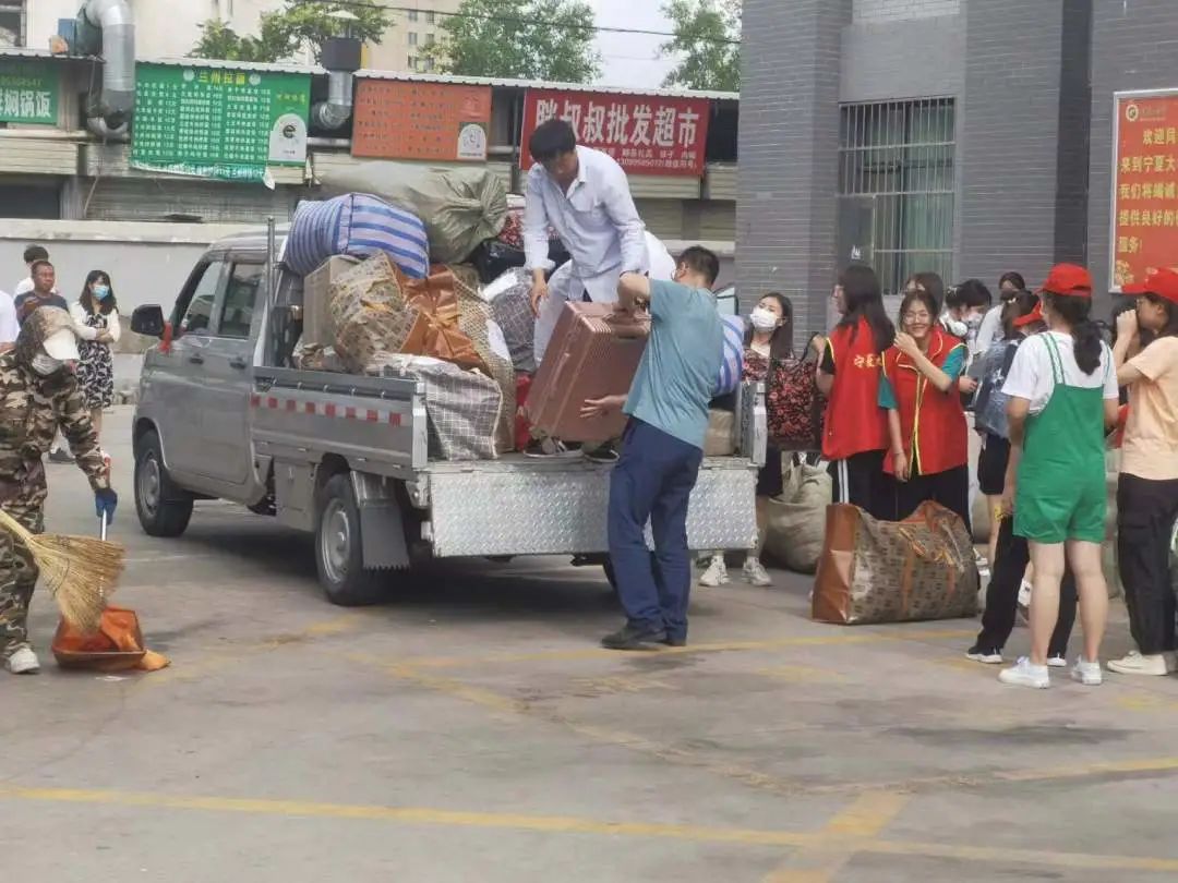 2019级本科生宿舍搬迁工作正式开启,学院党委书记李治涛、院长吕耀军、党委副书记杨扬、学生工作办公室主任王嘉豫、辅导员付晓晨前往现场指挥、协调搬迁工作,另有30余名志愿者参与其中,共同助力搬迁工作顺利进行。在贺兰山校区的搬迁现场,李治涛书记亲自上阵,协助同学们将行李装车。