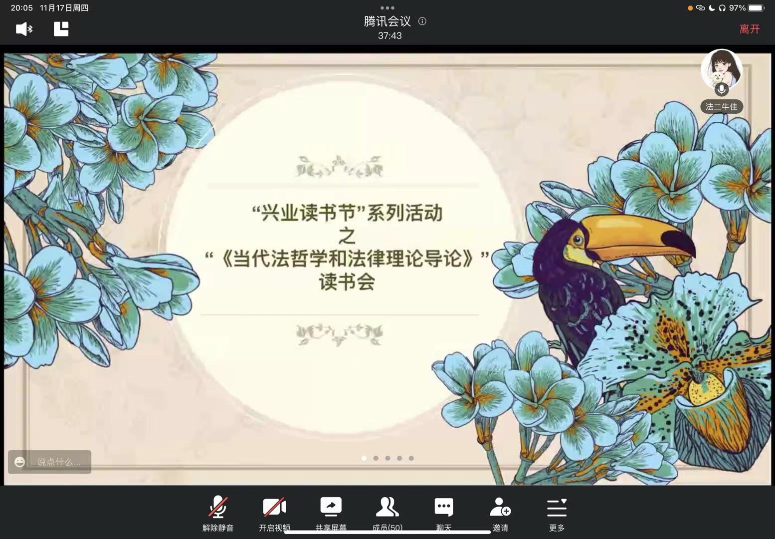 2022年11月17日晚,2020级法学二班、三班本科生举行“兴业读书节”系列活动之《当代法哲学和法律理论导论》读书会。本次读书会由17k小说