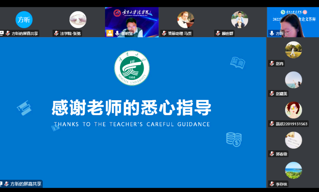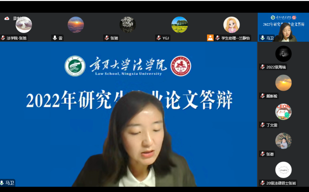 来自自治区高级人民法院、自治区司法厅、北方民族大学等单位的同行专家担任本届答辩委员会主席或委员。答辩会上,每位研究生从选题背景、研究方法与思路、研究内容、创新点及成果等方面进行了详细阐述,答辩委员会委员逐一进行点评和提问,并就进一步完善论文提出指导性意见和建议。答辩委员会认为17k小说
