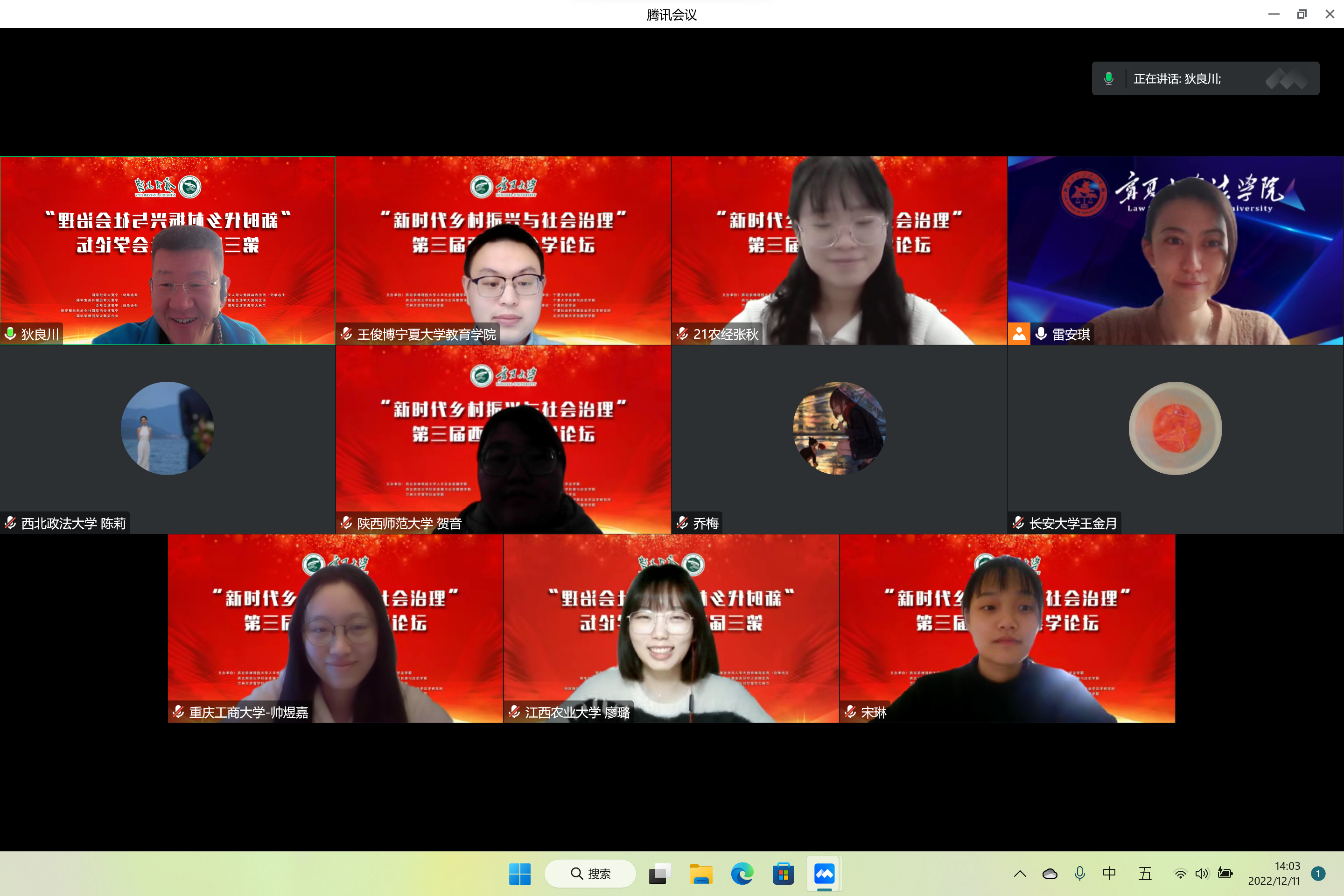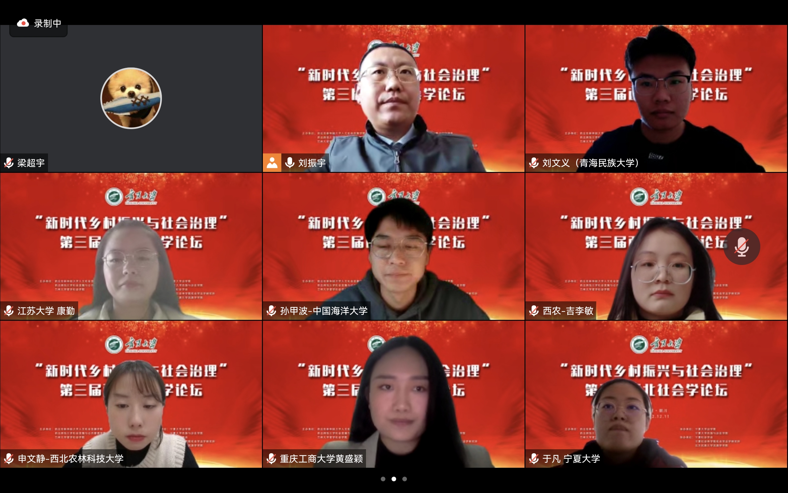 “新时代乡村振兴与社会治理”论坛暨第三届西北社会学论坛之硕士生论坛于12月11日以线上会议形式举办,会议由西北农林科技大学人文社会发展学院、西北师范大学社会发展与公共管理学院和兰州大学哲学社会学院主办,宁夏社会学会、宁夏社会科学院社会学法学研究所以及北方民族大学民族学学院协作举办,我校17k小说