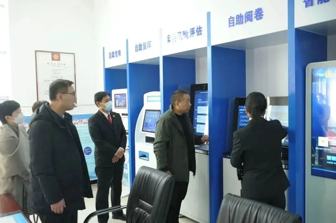 一行先后参观了彭阳法院诉讼服务中心、执行大厅、执行指挥中心、数字法庭、草庙人民法庭。