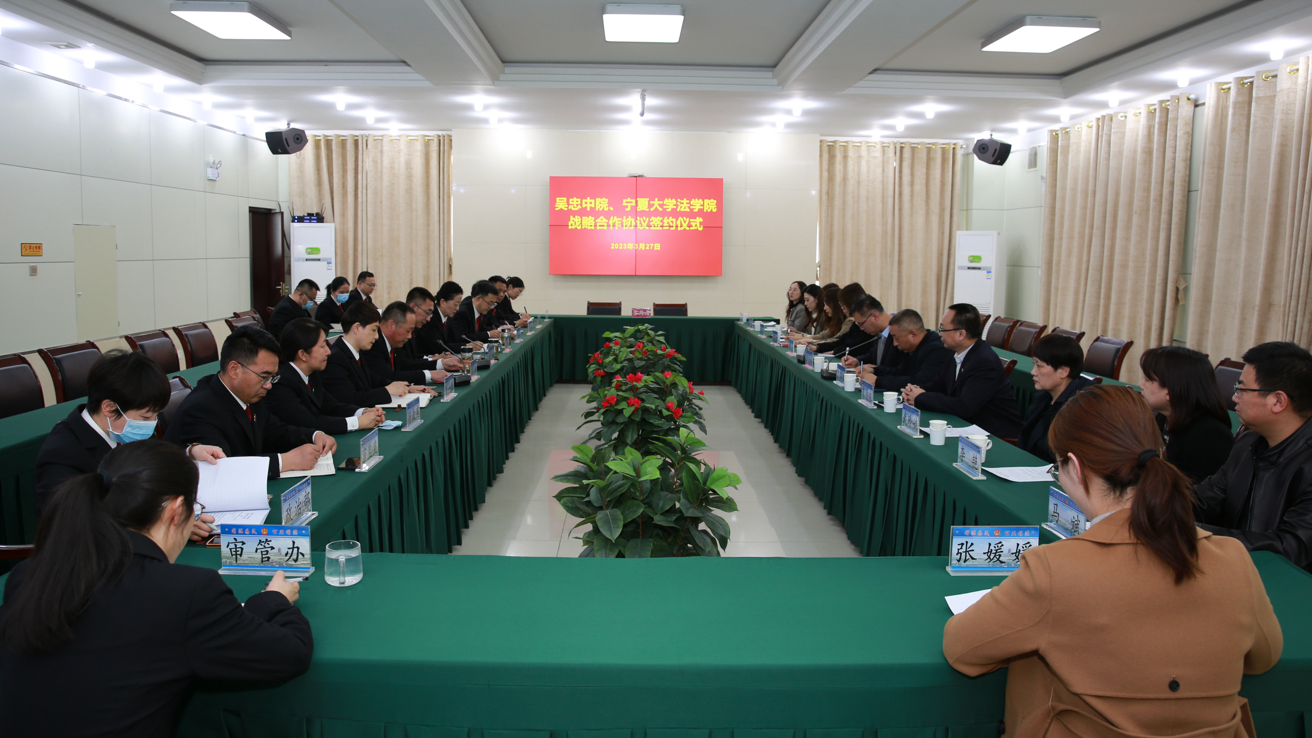 3月27日下午,学院与吴忠市中级人民法院举行交流合作签约仪式,双方就纵深推进高校和地方法院战略合作达成共识。