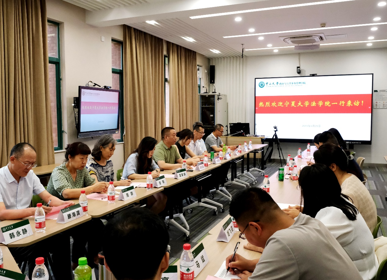 院长吕耀军教授、副院长陆筱璐副教授、行政管理与社会学系主任雷安琪副教授、MPA学位点负责人杨文林副教授、研究生办公室主任周群副教授、硕士点负责人张弛博士、行政管理与社会学系安翔教授、冯杰文教授、滕海滨副教授、马清虎副教授、张红娟副教授、张琴副教授、韩永静副教授、李俊群讲师、马斌博士、姬飞霞博士和贾陈亮博士一行17人赴中山大学政治与公共实务管理学院调研交流并举行座谈会。