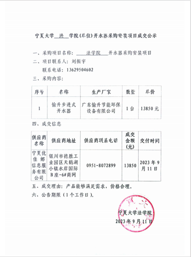 17k小说 17k小说 (单位)开水器采购安装项目成交公示
