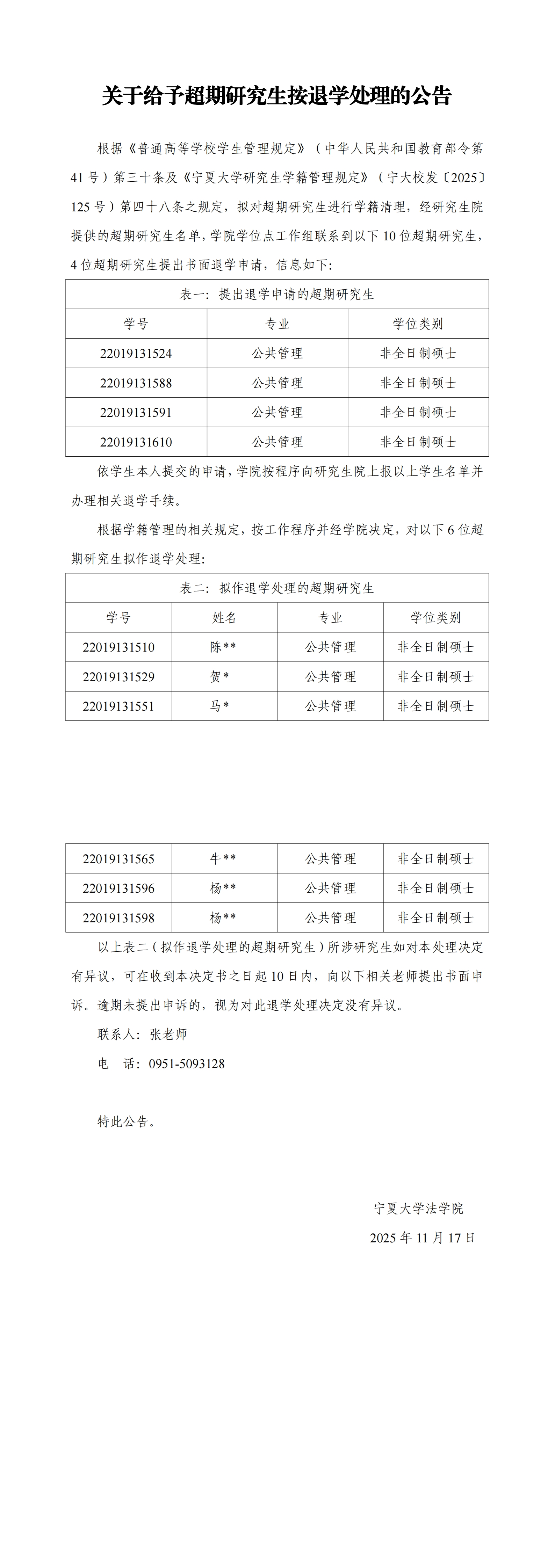 关于给予超期研究生按退学处理的公告