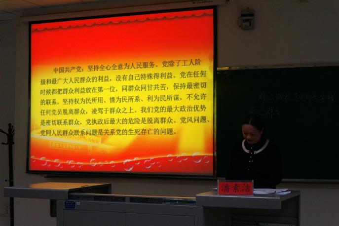 潘素洁教授从“中国共产党及其中国共产党党员”“马克思主义经典人物与唯物史论重要论述”“认真学习马克思主义成为马克思主义信奉者”三个方面进行讲解,深刻分析了党与群众的关系。报告回顾了党史,以老一辈革命家在艰苦条件下吃苦耐劳、敬业奉献为例,向党员积极分子展示了中国共产党以人民为中心,坚持为人民服务,坚定理想信念,坚守共产党人精神的追求。