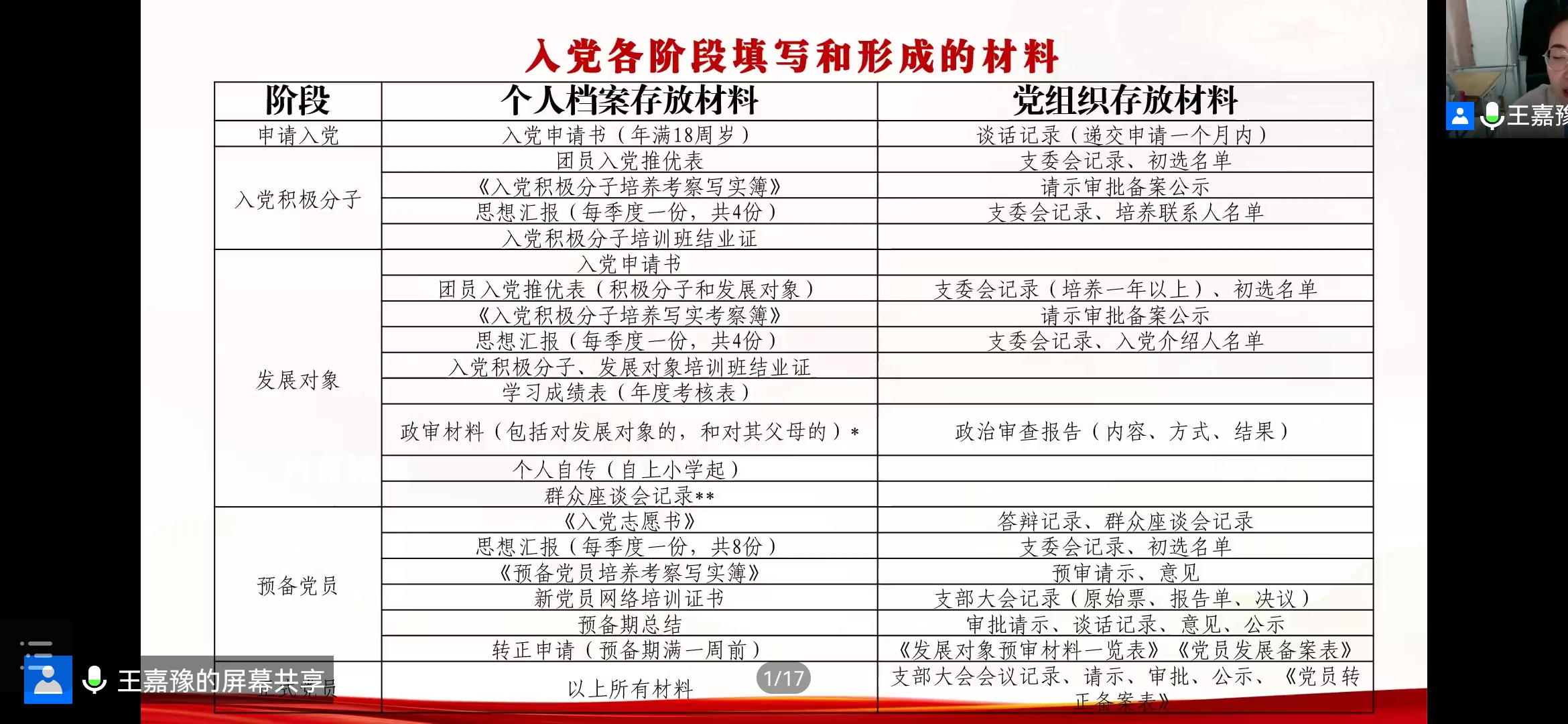 分党校第四十一期入党积极分子、第十五期发展对象培训班和第十四期“青年马克思主义者培养工程”暨团学骨干培训班于线上开展以“入党材料填写要点”为主题的党课培训,培训班全体学员参加。