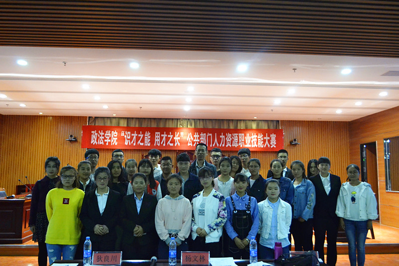 第八届教风、学风建设月系列活动之“识才之能,用才之长”人力资源职业技能大赛在文科楼顺利举办。学院副院长尹强老师,行政管理专业杨文林、胡滨、张斐松、张红娟、狄良川等老师,辅导员老师以及团委学生会干部分别担任了此次大赛的评委。