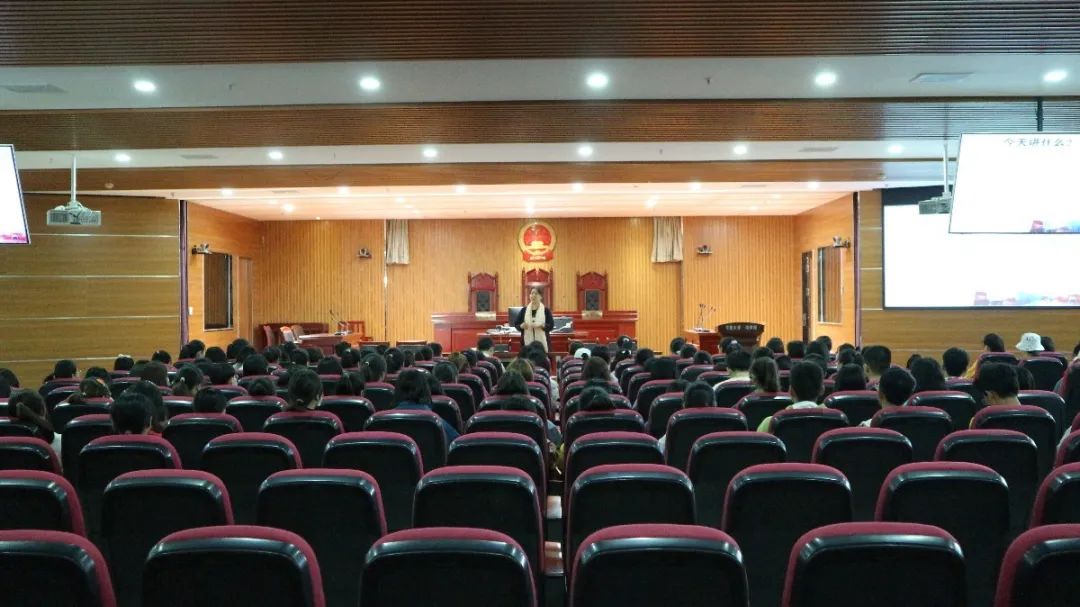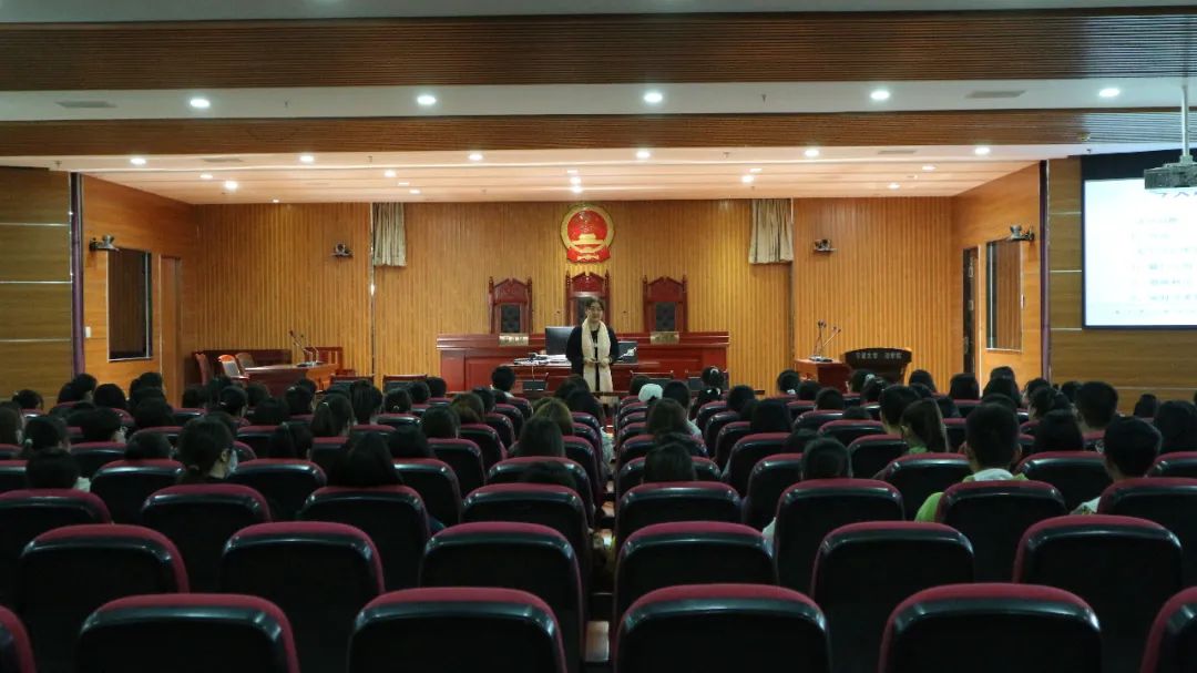 在文荟楼模拟法庭开展新生入学心理健康教育讲座,讲座由学校心理健康咨询中心的张博老师担任主讲,2020级全体新生参加讲座。