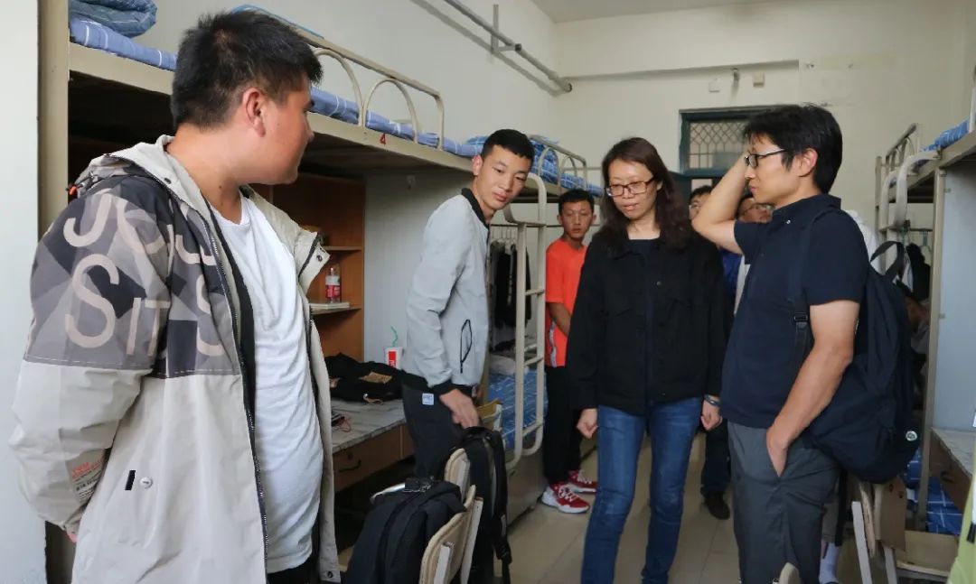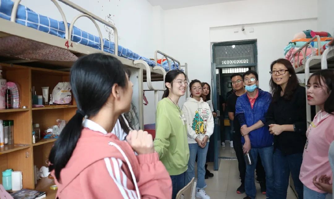党委副书记杨扬,新生班主任马浩丹、何磊、贾陈亮、马斌,本科生辅导员王嘉豫,走入新生所在的寝室,关心慰问刚入学的新生。同学们对老师们的到来表示热烈欢迎。
