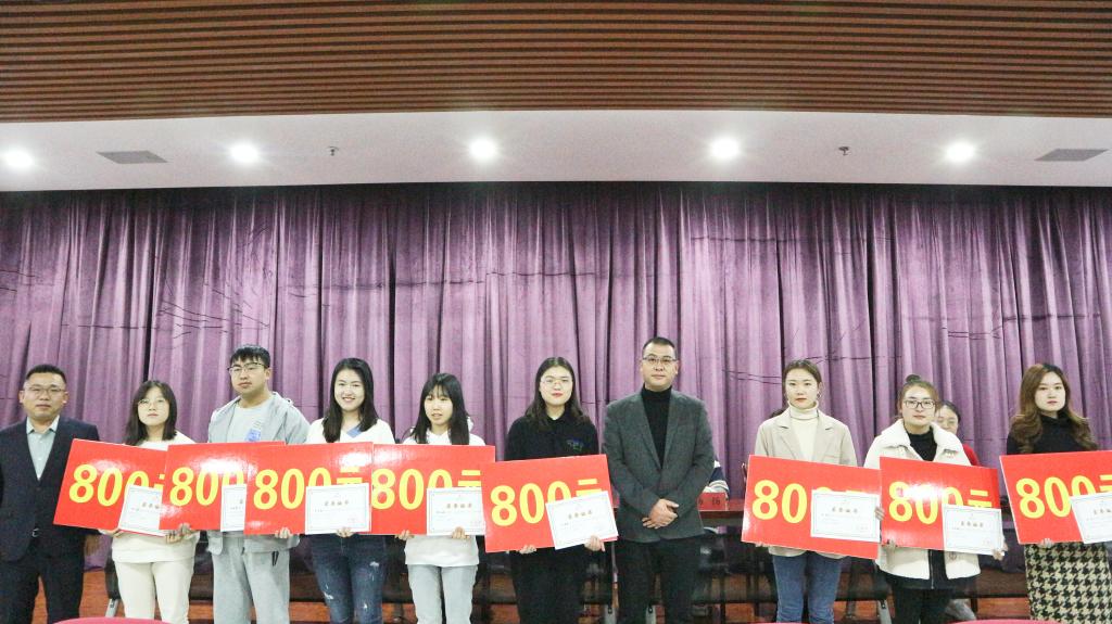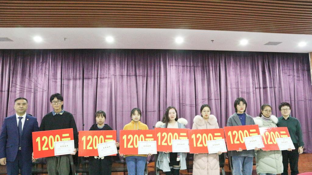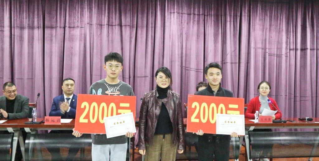 党委书记潘瑞与宁夏兴业律师事务所合伙人一同为获奖学生颁发奖状和奖金,并发表讲话。