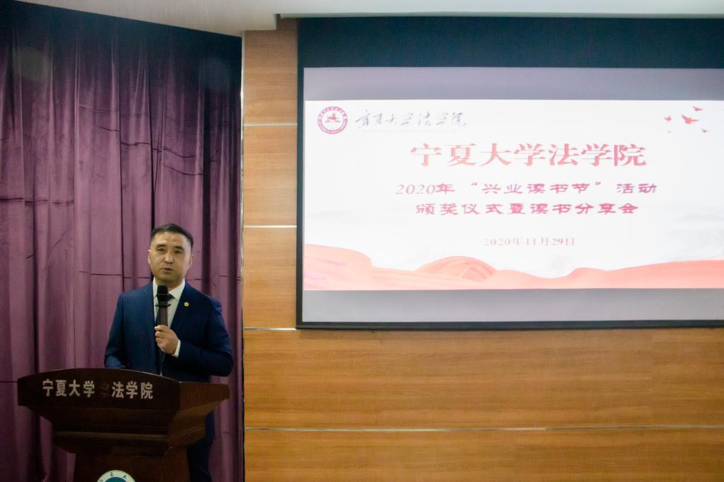 于11月29日晚在文荟楼模拟法庭举办2020年“兴业读书节”活动颁奖仪式暨读书分享会。学院党委书记潘瑞、副书记杨扬,宁夏兴业律师事务所合伙人郝运清、杨玉君、马力国,17k小说