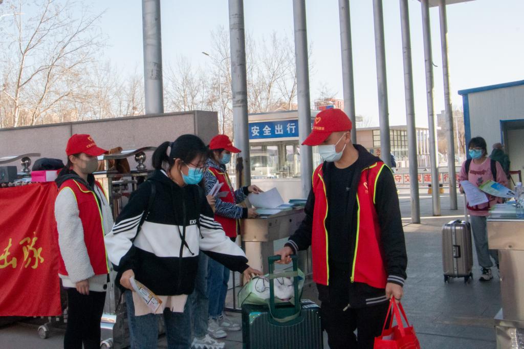 同学们佩戴口罩,携带行李,手持健康登记卡和健康码,整齐有序地排列在校门口等待通过测温通道。学院领导、辅导员、学生骨干和青年志愿者以饱满的工作热情和高昂的精神姿态迎接每一名返校同学,认真核对行程信息及健康状态的同时,提醒同学们进入宿舍要开窗通风、进行彻底的卫生清洁等一系列注意事项,并为同学们发放防疫健康手册。