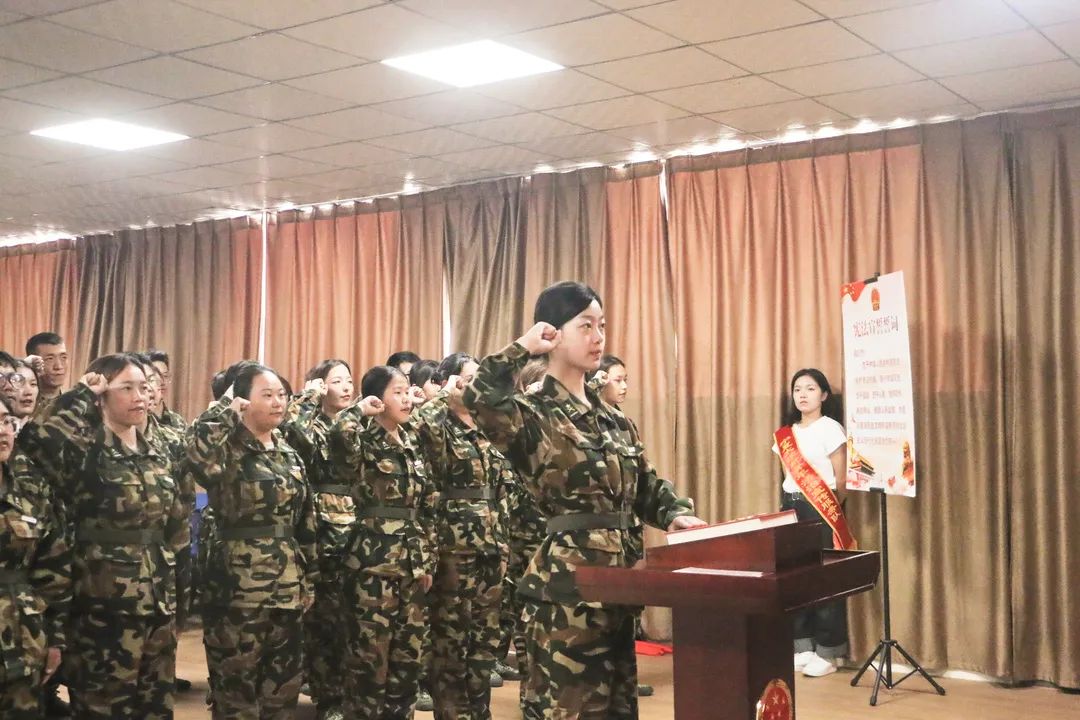 党委书记潘瑞监誓,2021级法学三班王莲绮领誓,2021级法学专业本科生代表高举右拳庄严宣誓:“忠于中华人民共和国宪法,维护宪法权威,履行法定职责,忠于祖国、忠于人民,恪尽职守、廉洁奉公,接受人民监督,为建设富强民主文明和谐美丽的社会主义现代化强国努力奋斗!”