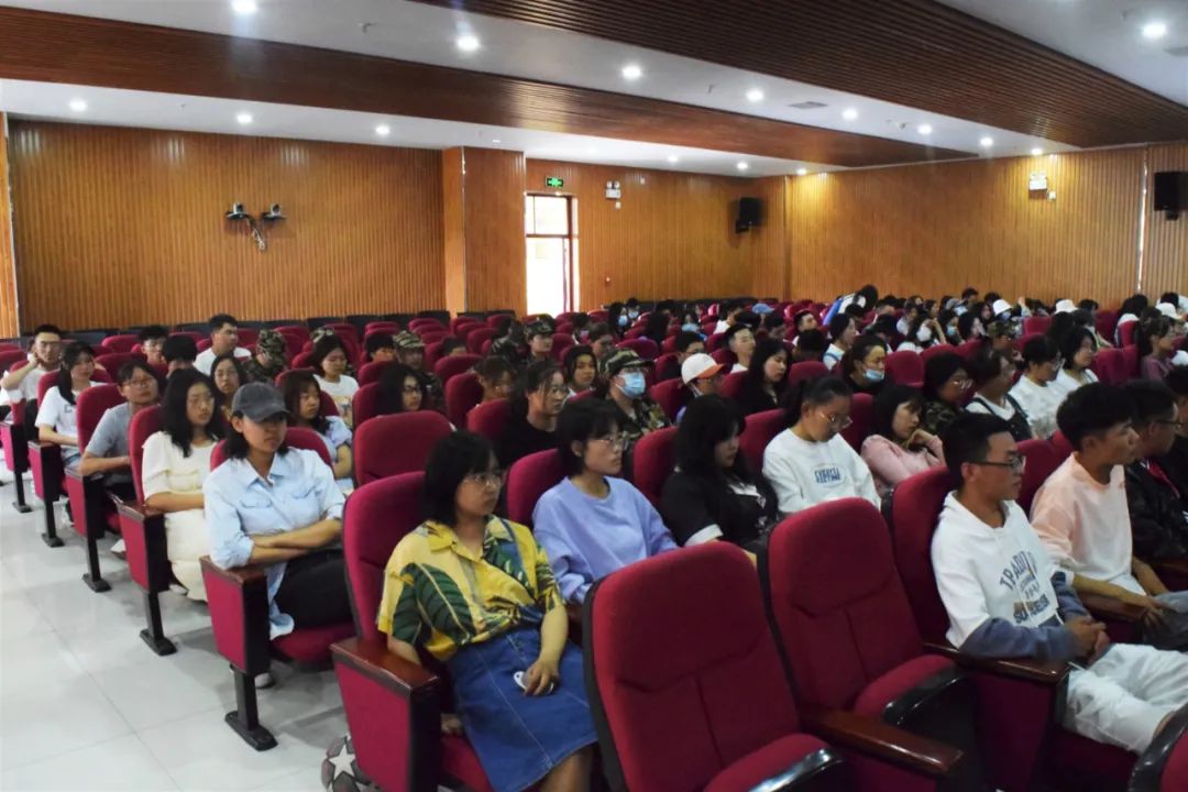 于模拟法庭召开2021级本科生年级大会暨燕宝奖学金发卡仪式,会议由辅导员付晓晨主持,2021级全体本科生到场参加。