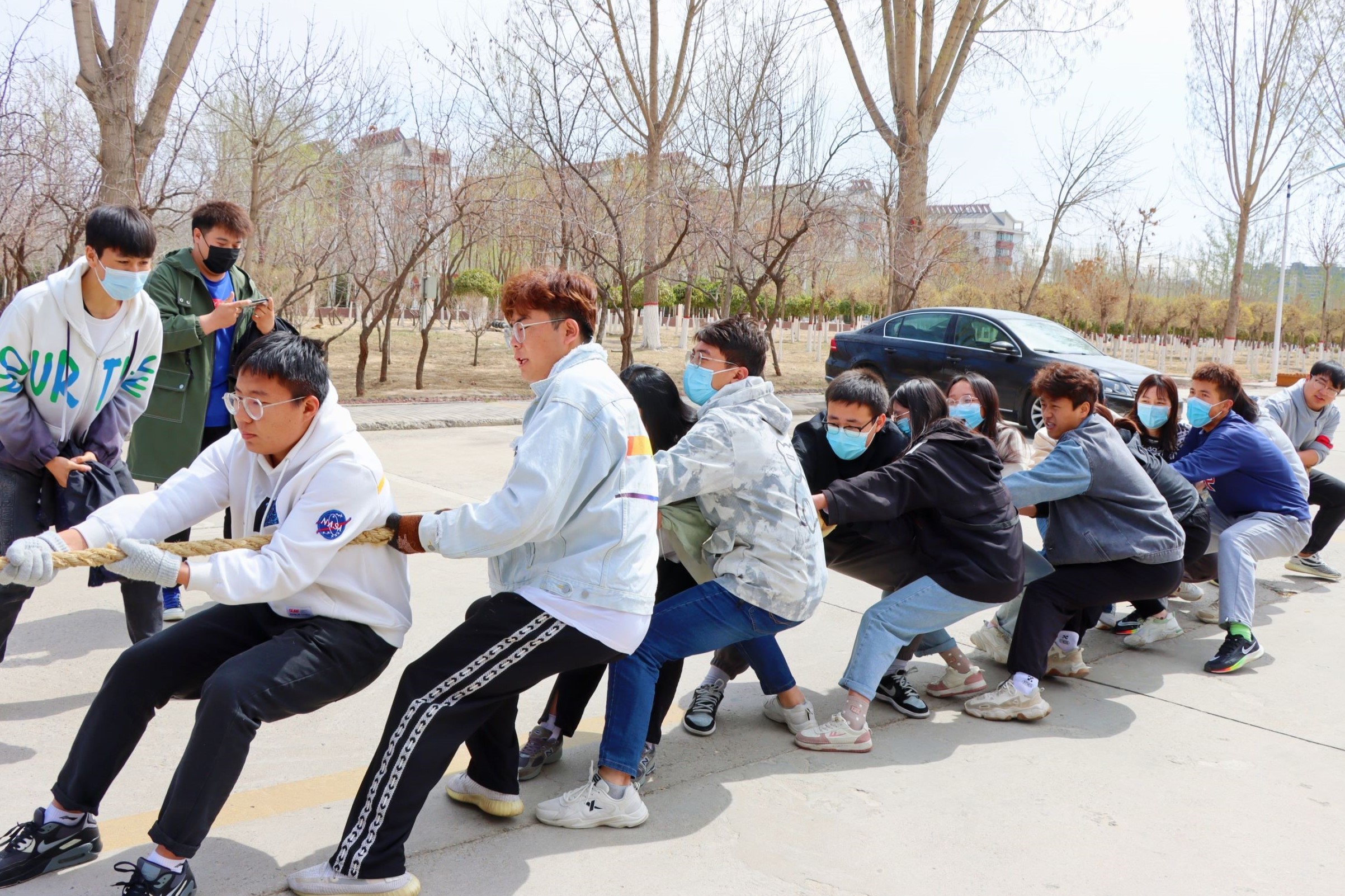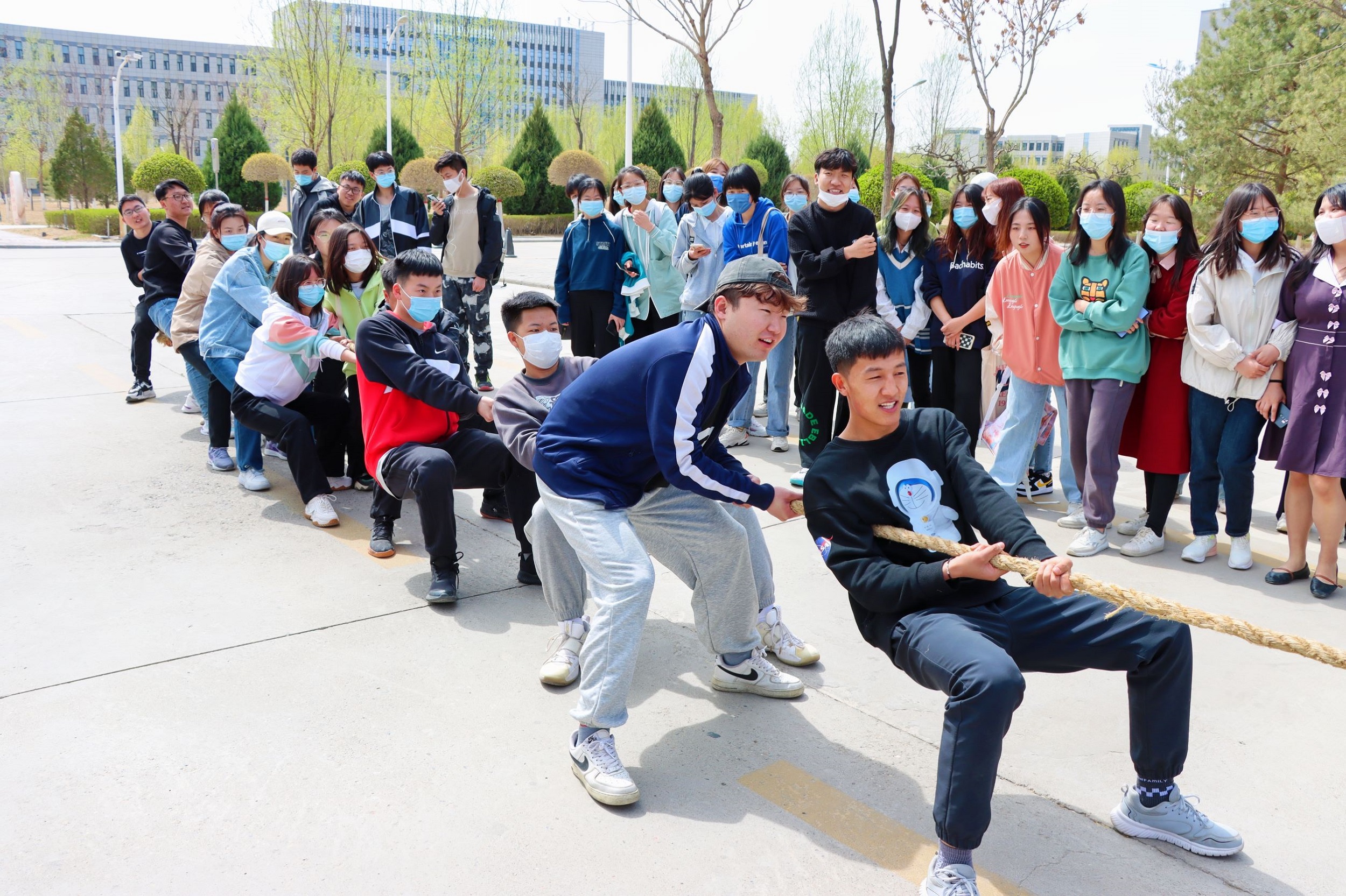于3月29日组织开展“逐梦杯”拔河比赛。本次比赛有来自2019级至2021级共三个年级组成的14支队伍参加,赛期三天。
