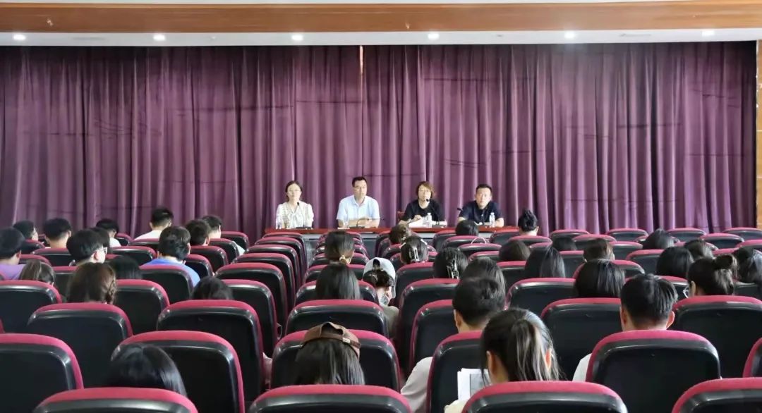 于模拟法庭召开2019级本科生宿舍搬迁工作部署会,学院党委书记李治涛、副书记杨扬、学生工作办公室主任王嘉豫、辅导员付晓晨出席会议。