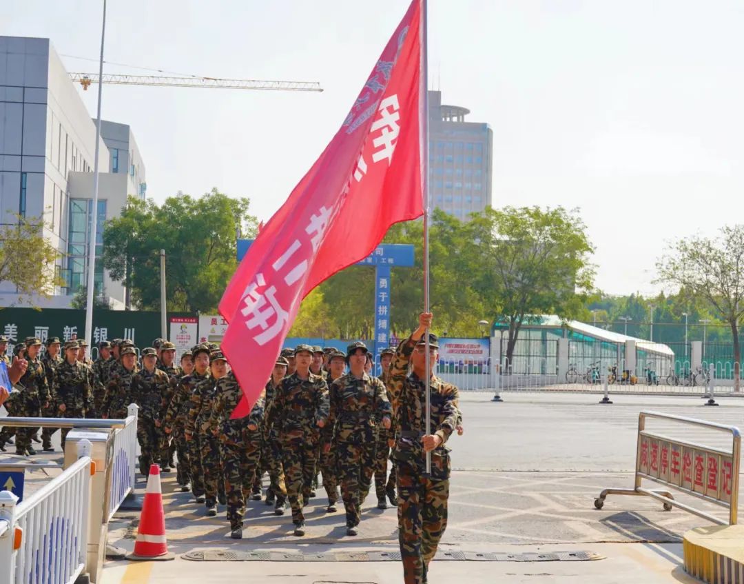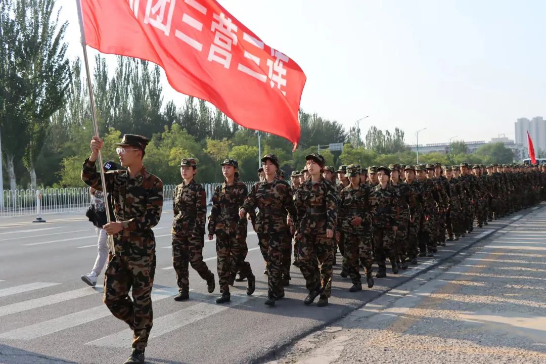 党委副书记杨扬、辅导员付晓晨及军训教官的带领陪同下,向着本次军训九公里拉练发起了挑战。