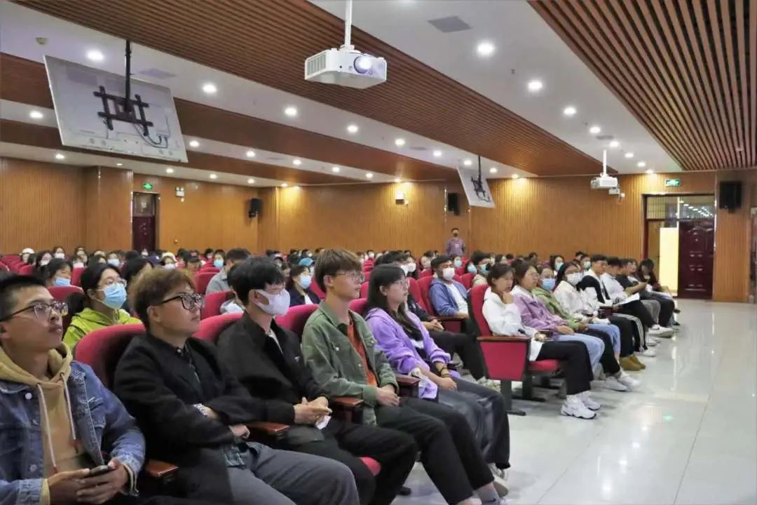 2021级本科生金晶分享了自己大学一年的体会与感受,与在场同学热情互动,使新同学对大学生活充满期待。