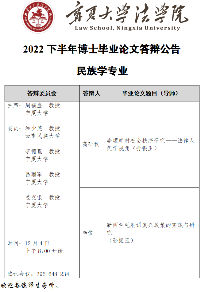 17k小说 17k小说 民族学专业2022下半年博士毕业论文答辩公告