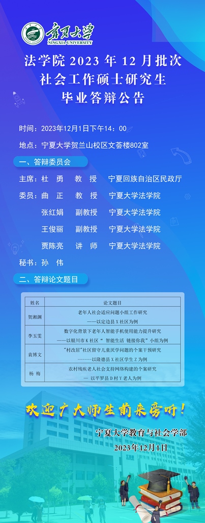 17k小说 2023下半年社会工作硕士毕业答辩公告