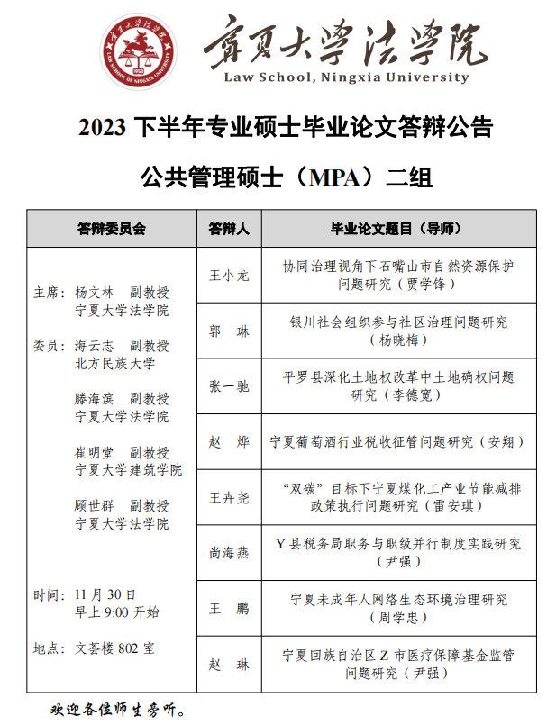 17k小说 2023下半年公共管理硕士毕业答辩二组公告