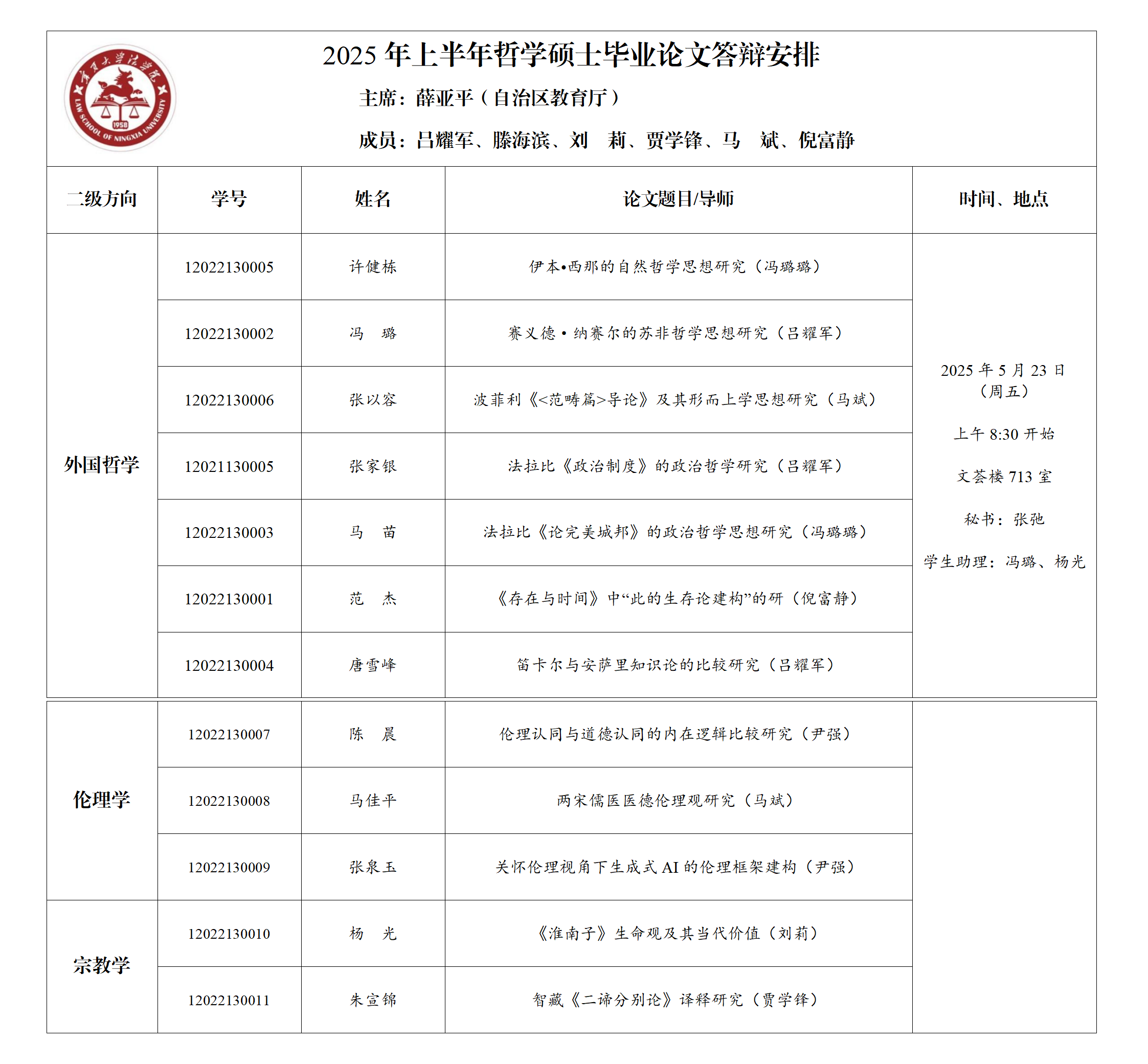 2025年上半年哲学硕士毕业论文答辩公告