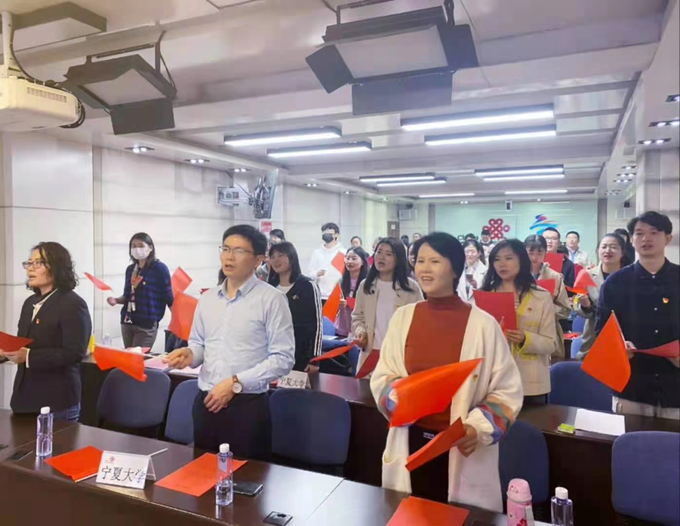 副院长靳永雄、哲学与民族学研究生党支部书记江晓红,宁夏联通党群工作部主任吕晓明、宁夏联通党群工作部党务专干王英,支部全体党员及入党积极分子参加了主题党日活动,活动由党支部宣传委员王燕子主持。