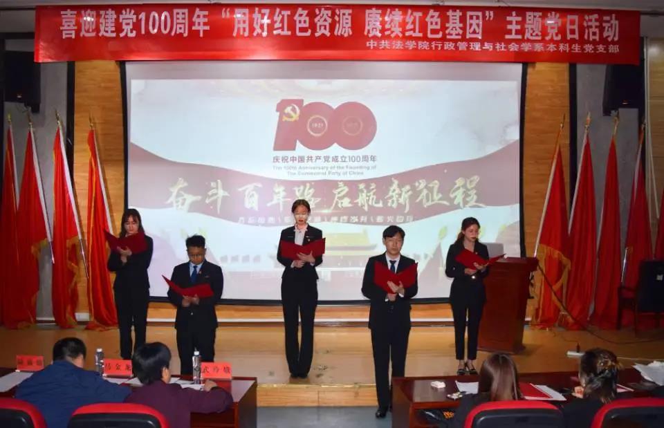 行政管理与社会学系本科生党支部在怀远校区英才报告厅举办喜迎建党100周年“用好红色资源,赓续红色基因”主题党日活动,副院长马金龙、党支部书记武玲娥、行社系主任陆筱璐出席,支部全体党员、发展对象、入党积极分子到场参加。活动由2018级行政管理班王丹主持。