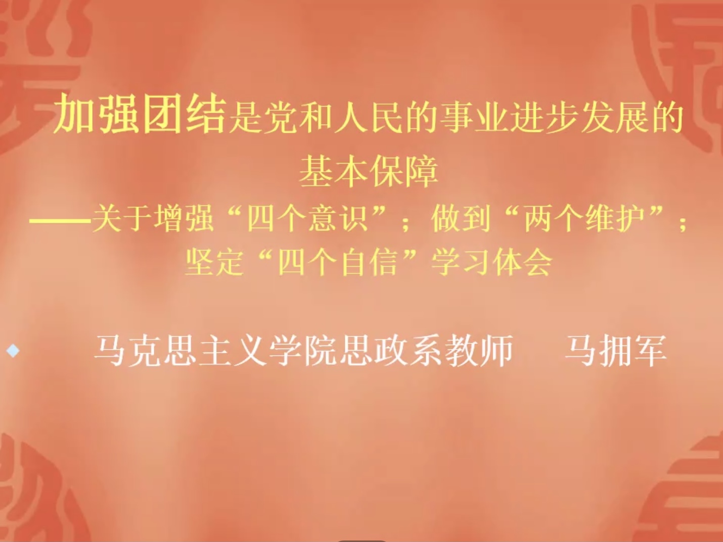 分党校特邀马克思主义学院思政系教师马拥军为学院第四十期入党积极分子、第十四期党员发展对象培训班学员作《加强团结是党和人民的事业进步发展的基本保障》主题讲座。讲座采用线上腾讯会议形式召开。