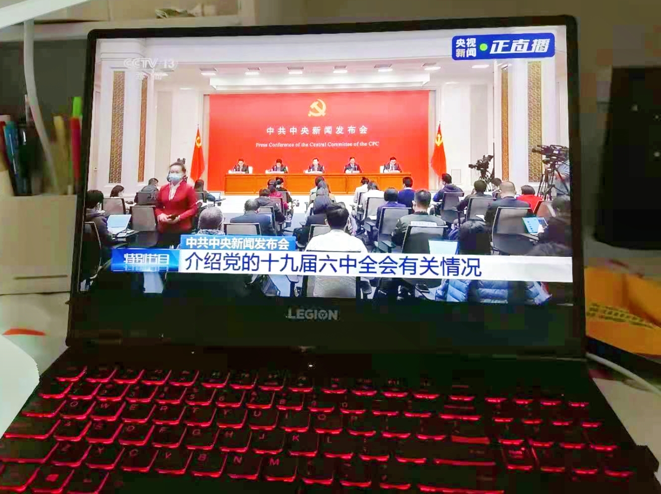 师生积极收听收看中共中央举行的新闻发布会,认真学习党的十九届六中全会精神,反响热烈。