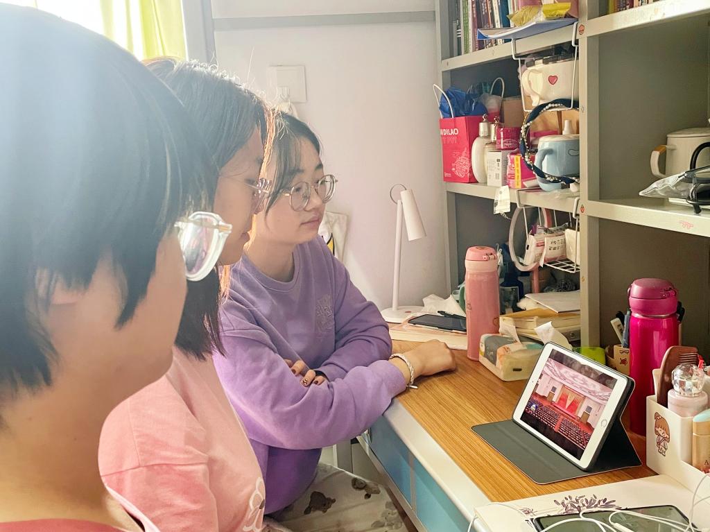 尽管当前疫情形势严峻,同学们都在宿舍里隔离,但是阻挡不了大家学习十九届六中全会精神的心,一大早同学们在宿舍里一同观看十九届六中全会直播,全面总结党的百年奋斗重大成就和历史经验,将使全党增长智慧、增进团结、增加信心、增强斗志,更加坚定、更加自觉地践行初心使命,在新时代新征程上展现新气象新作为。历史从哪里开始,思想进程也从哪里开始。作为大学生,每个同学都有义务全面提高自己的思想道德修养。