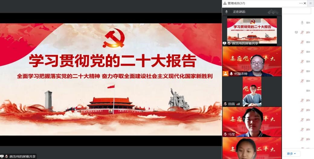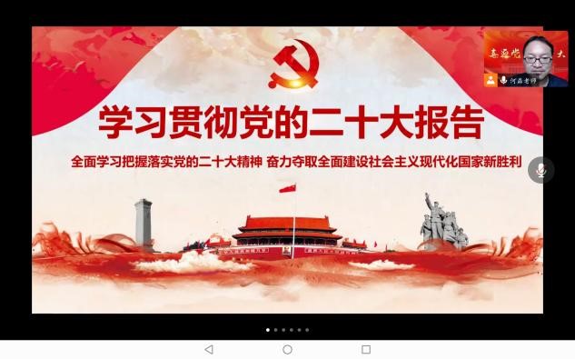 最后,由赵永贵、李勇杰、杨佳丽、柴李娜等36位同志作交流研讨。围绕党的二十大报告的主题、“三个务必”、“马克思主义中国化时代化新境界”、“中国式现代化”、“实施科教兴国战略”等内容依次进行了交流分享,畅谈在新时代新征程中作为一名共产党员的使命任务,并表示要进一步增强思想自觉、政治自觉、行动自觉,立足实际,立足本职,将报告提出的一系列重大战略部署、重大举措落实到具体学习工作中。