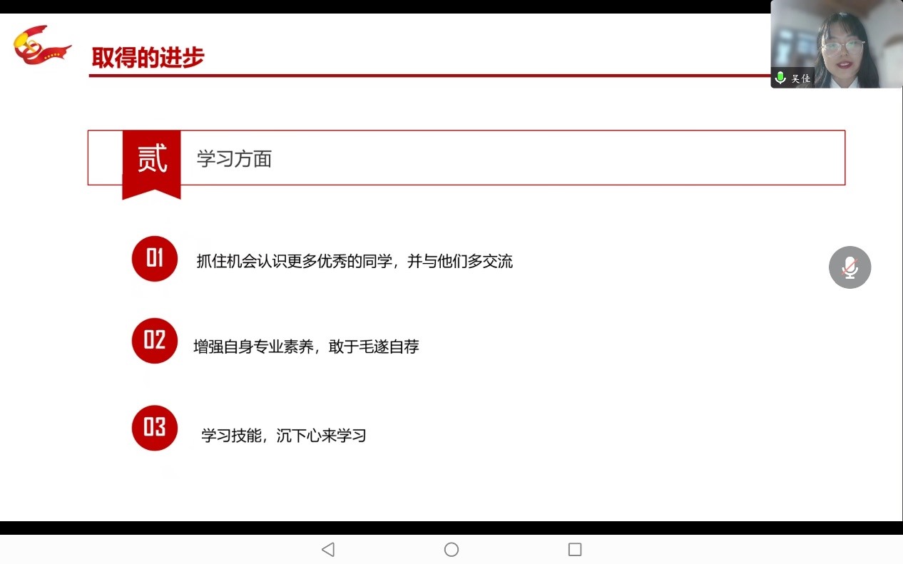 马莉萍同志作为首位报告人,提纲挈领,深入浅出的对自己预备期内的思想、工作、学习情况,作深刻的剖析。在她的汇报中,我们了解到,她在预备党员的一年里面,政治思想、学习、生活和工作等各方面都取得了巨大的进步。当然,对于自身存在的一些不足之处,例如理论知识仍需加强,她也做出了深刻反思,并表示在今后努力改正。在她之后,吴佳、李立菲、温佳惠、张飞虎、罗璇、唐浩玮、郭嘉仪同志陆续进行情况汇报。